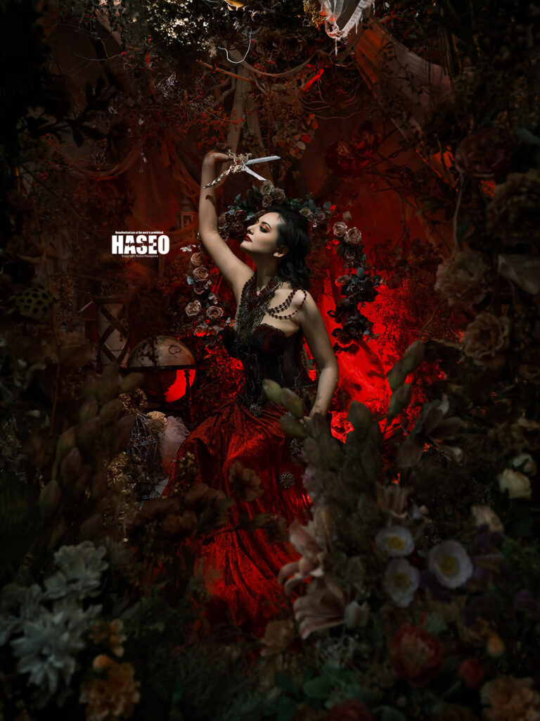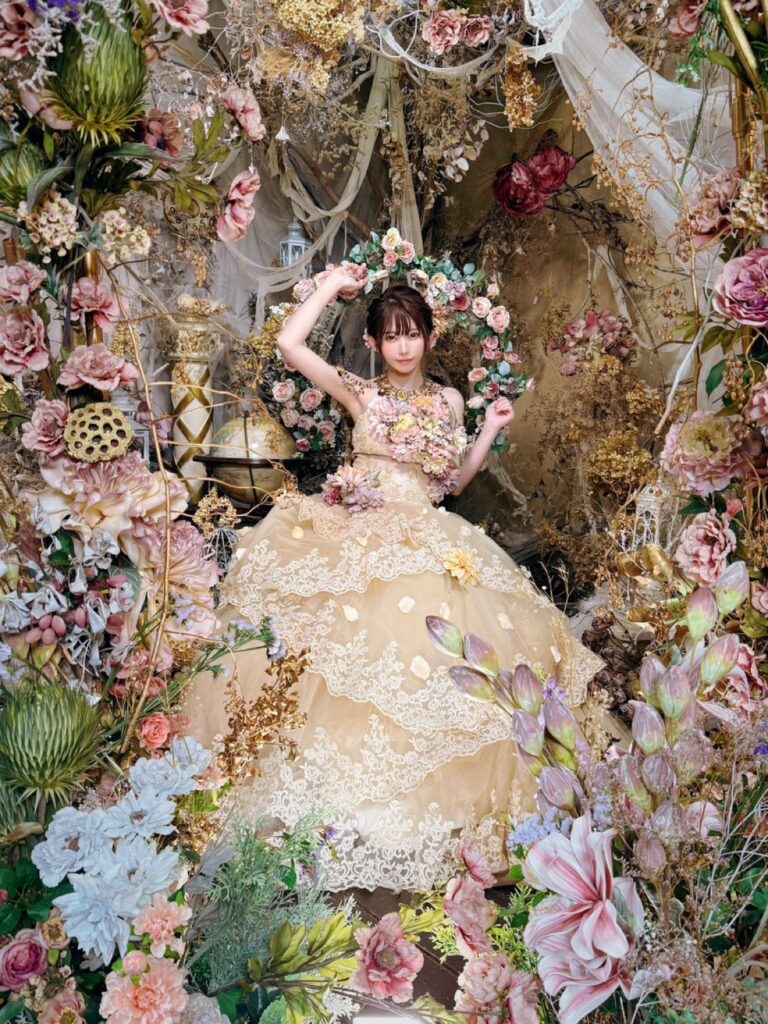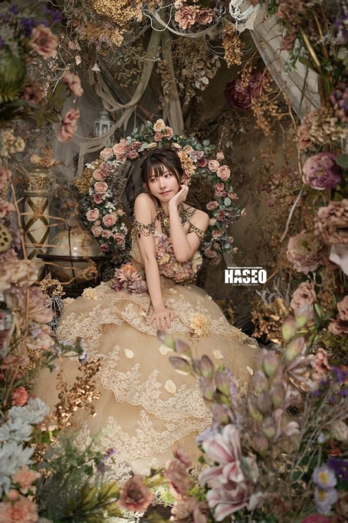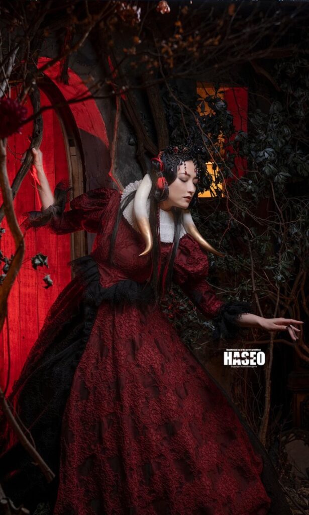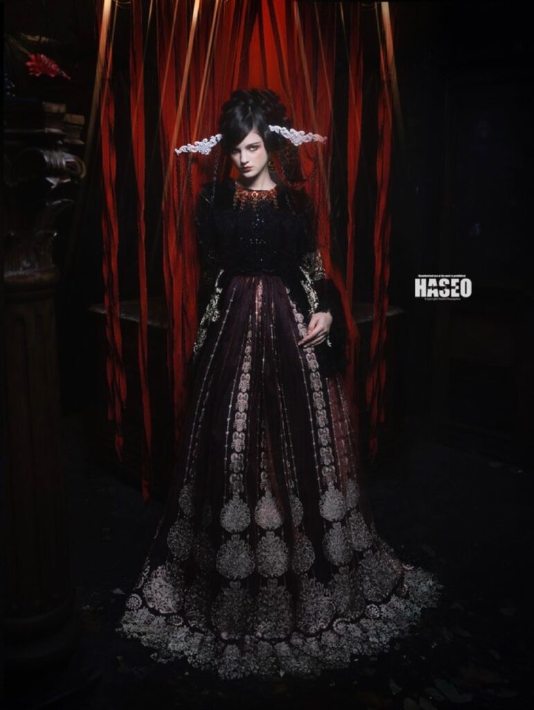異世界に迷い込んだような夢見るような作品の為のお衣装は、贅沢に生地やレースを重ねたり、重厚感のある素材選びにこだわっています。
