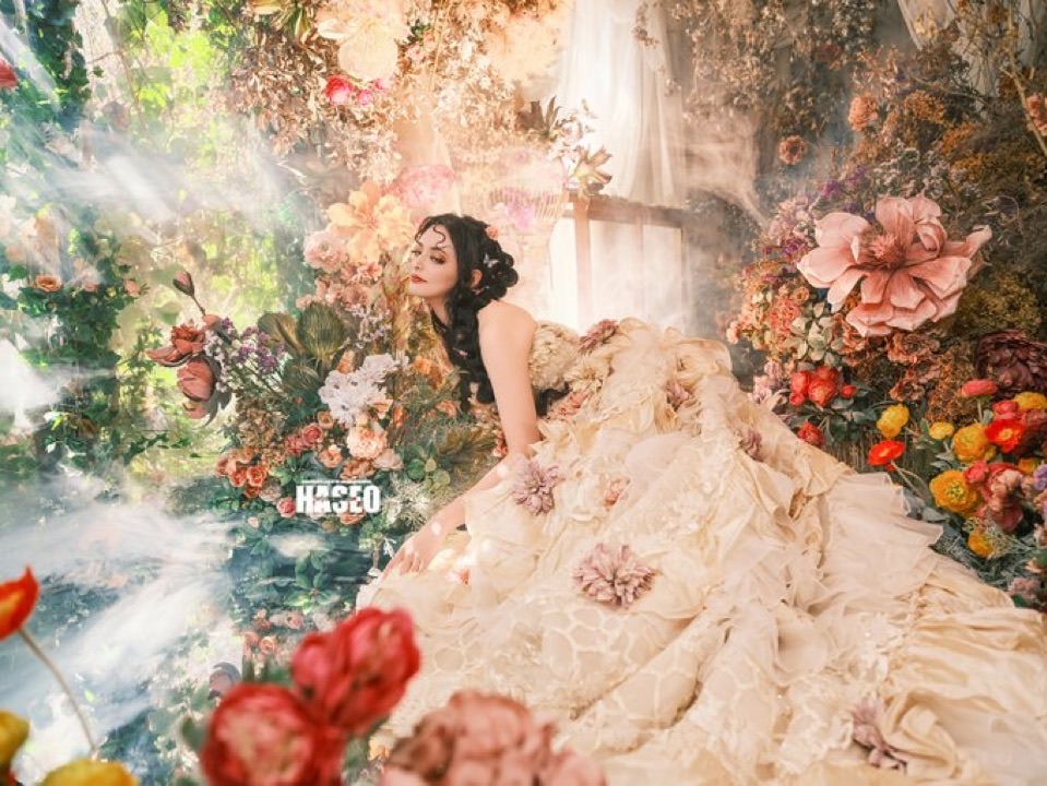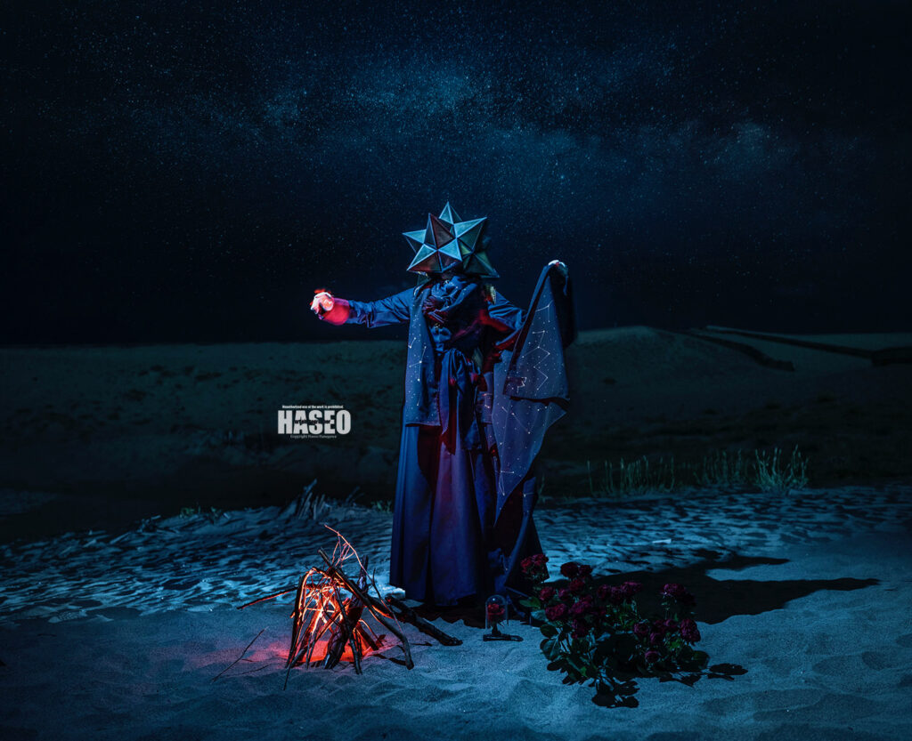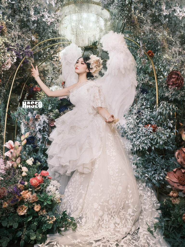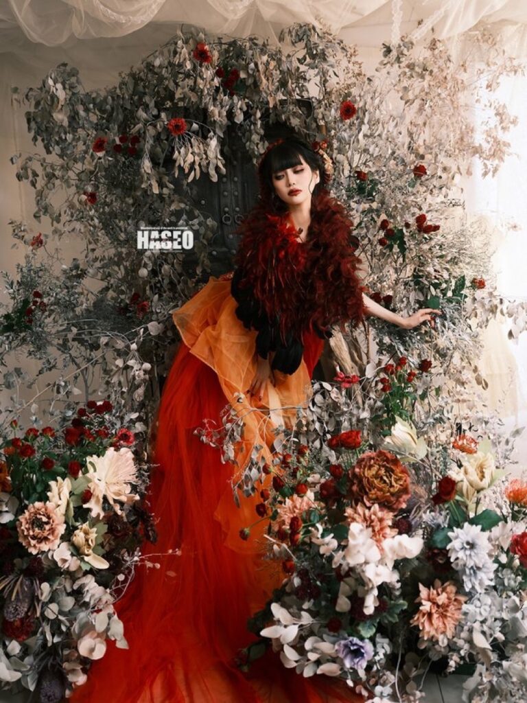 異世界に迷い込んだような夢見るような作品の為のお衣装は、贅沢に生地やレースを重ねたり、重厚感のある素材選びにこだわっています。