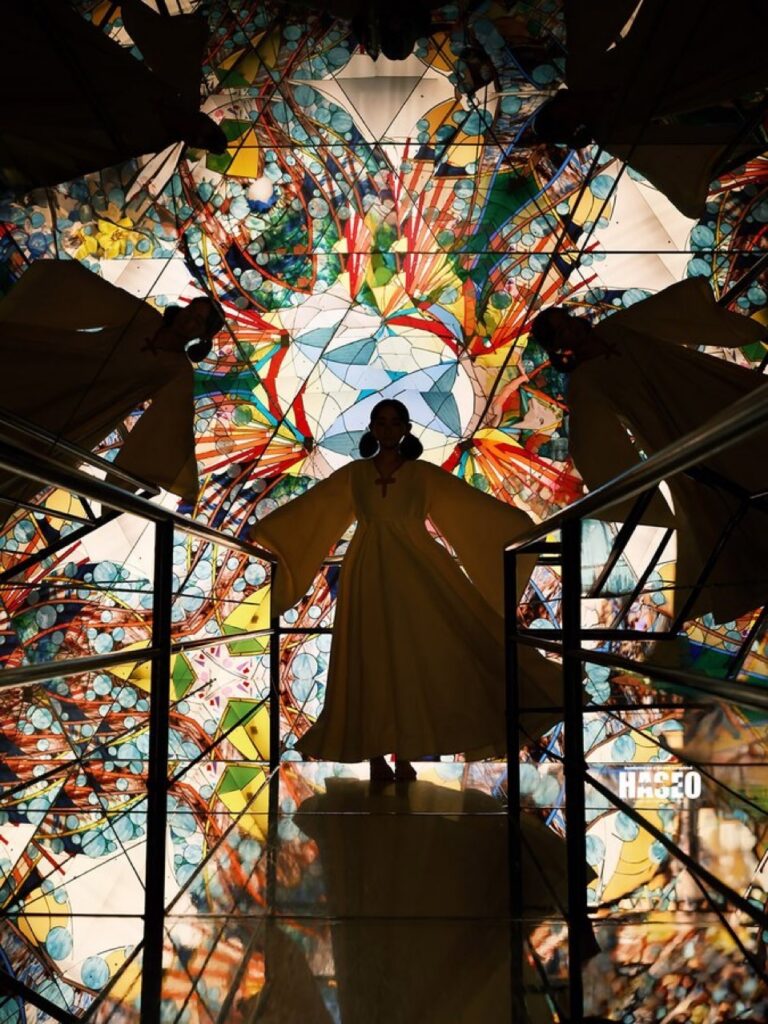 同じ手テクニックを用いて、背景布を制作した作品です。(以下の作品は衣装は他デザイナー様の作品です。)